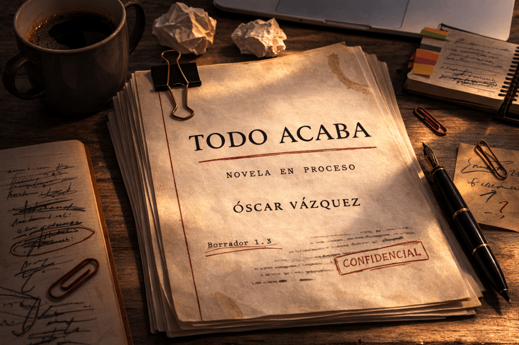 Novela en proceso.Una historia sobre lo que permanece cuando todo se derrumba y sobre aquello que, incluso al terminar, sigue latiendo.